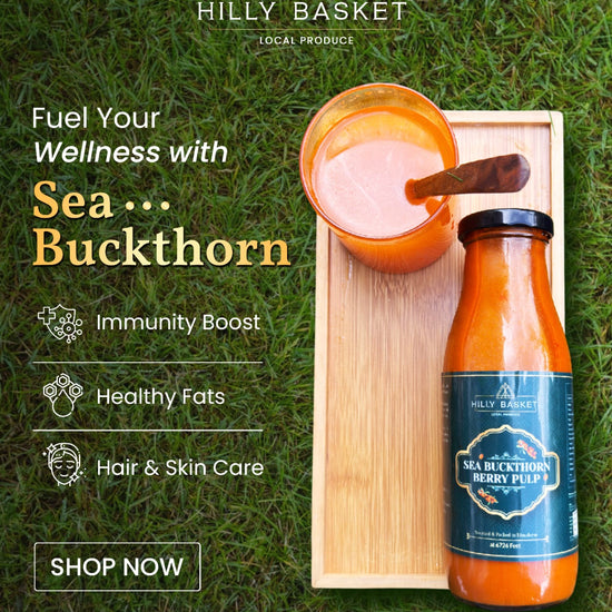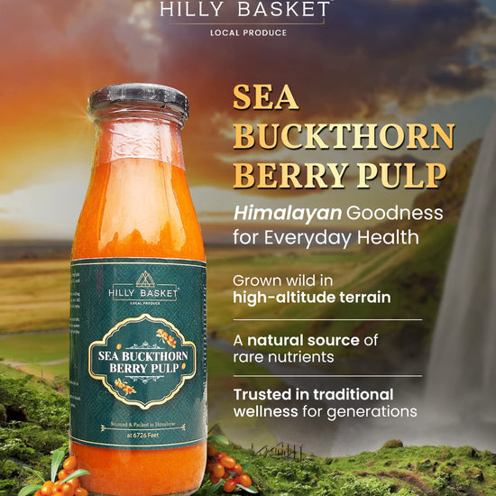 Boost your wellness with every sip of our 100% pure natural Sea Buckthorn pulp, crafted from handpicked berries grown in the pristine zanskar valley. This golden-orange elixir is loaded with vitamins, antioxidants, and essential fatty acids that nourish you from within.