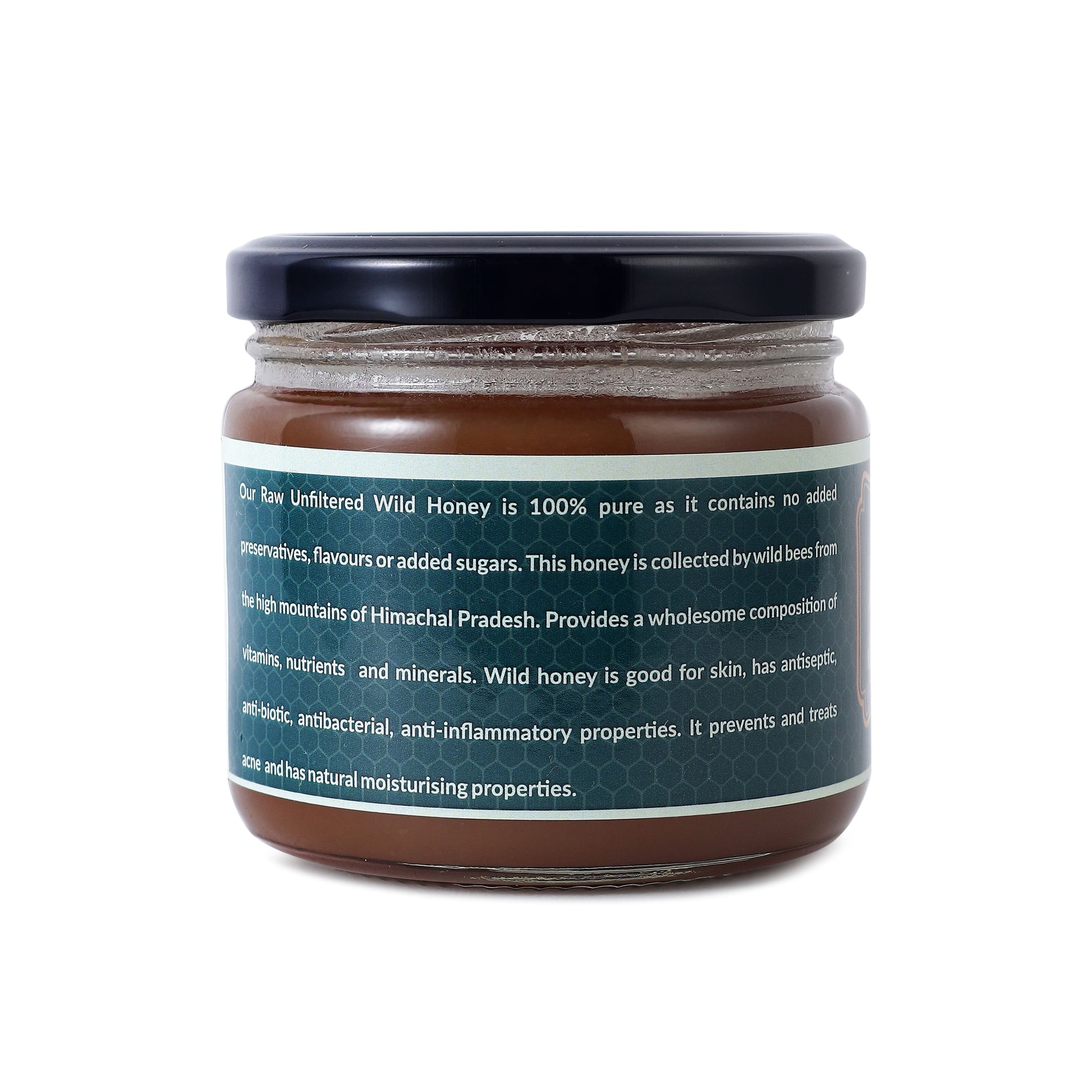 Our Raw Unfiltered Wild Honey is 100% pure as it contains no added preservatives, flavours or added sugars. This honey is collected by wild bees from the high mountains of Himachal Pradesh. Provides a wholesome composition of vitamins, nutrients and minerals. Wild honey is good for skin, has antiseptic, anti-biotic, antibacterial, anti-inflammatory properties. It prevents and treats acne and has natural moisturising properties.