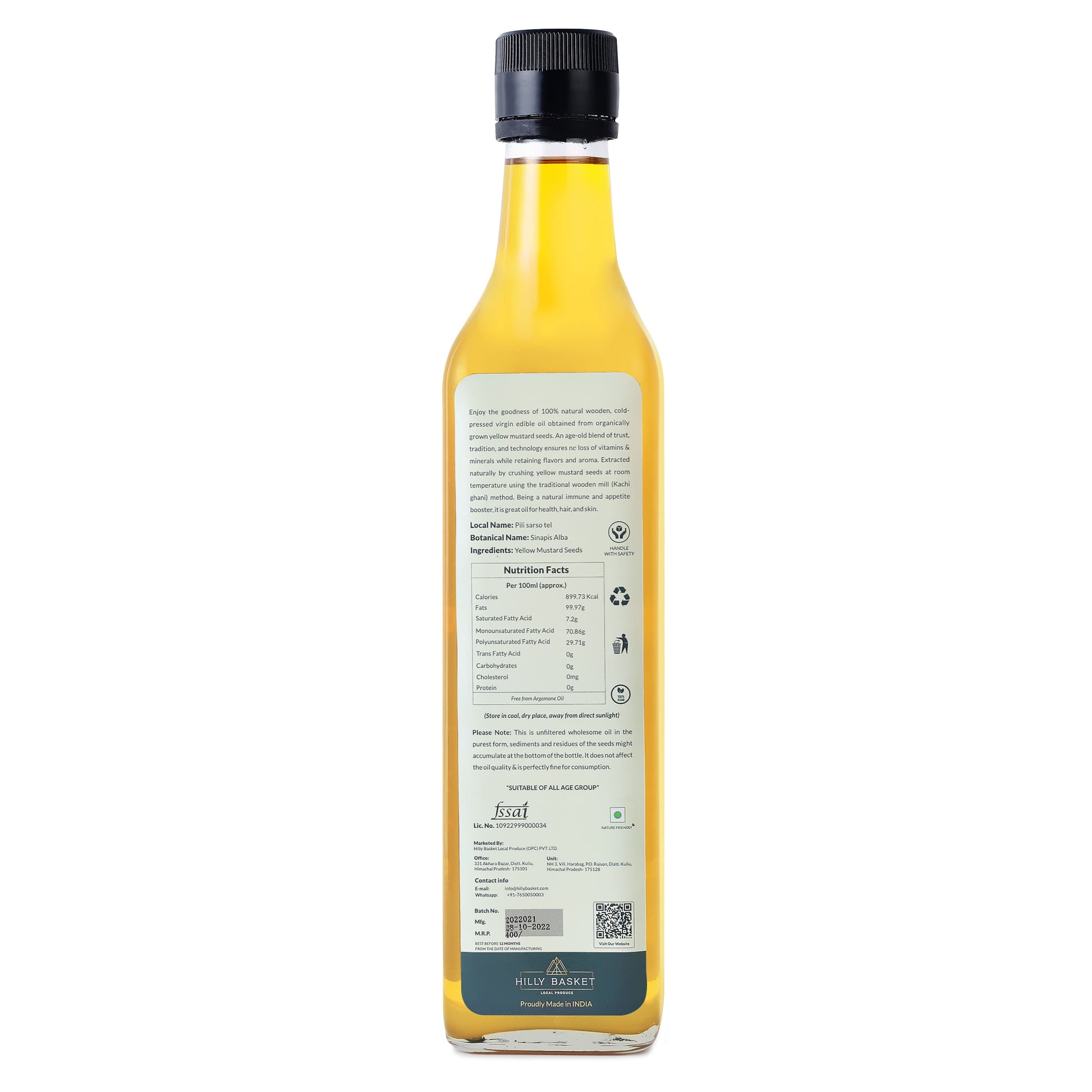 Enjoy the goodness of 100% natural wooden, cold-pressed virgin edible oil obtained from organically grown yellow mustard seeds. An age-old blend of trust, tradition, and technology ensures no loss of vitamins & minerals while retaining flavors and aroma. Extracted naturally by crushing yellow mustard seeds at room temperature using the traditional wooden mill (Kachi ghani) method. Being a natural immune and appetite booster, it is great oil for health, hair, and skin.